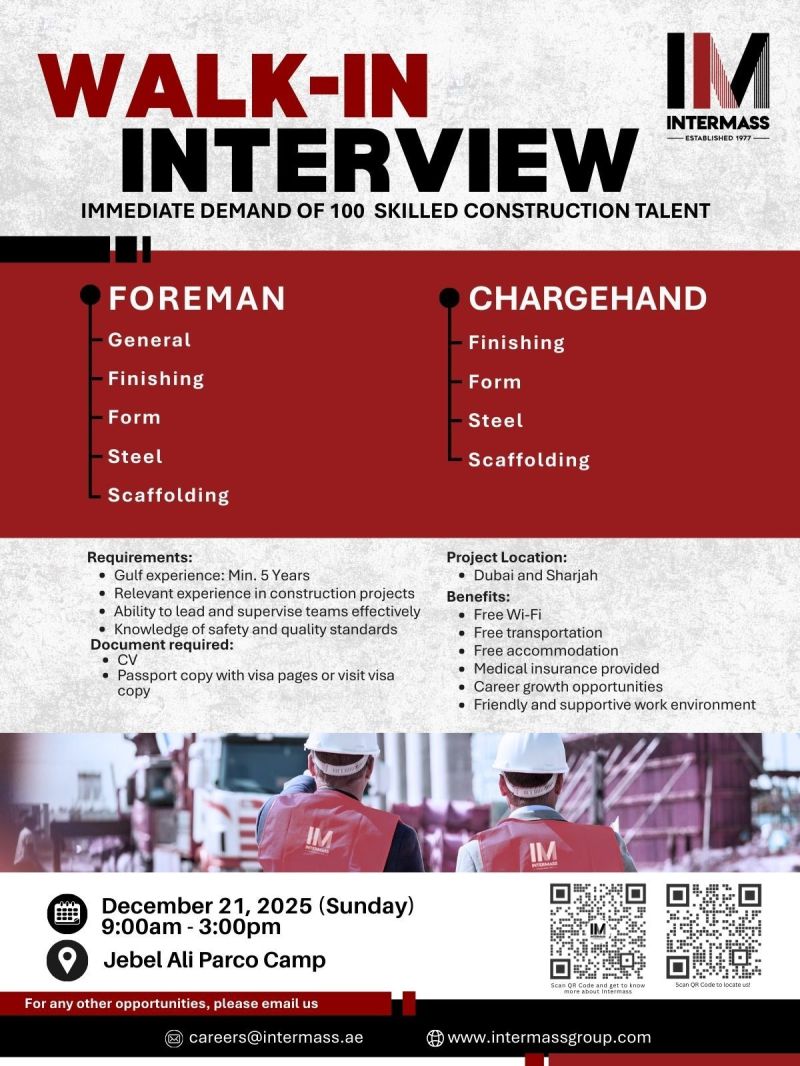 Foreman: General, Finishing, Form, Steel, Scaffolding