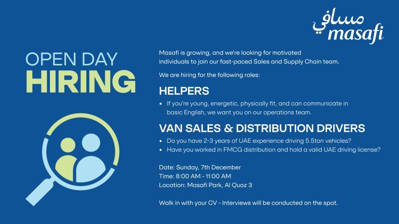 Drivers: 2-3 years of UAE experience driving 5.5 ton vehicles.